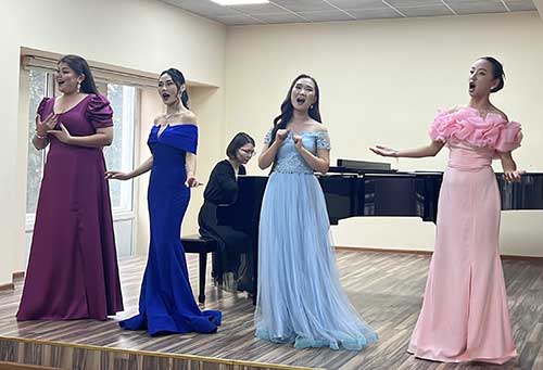 İstedadlı tələbələrin çıxış etdiyi konsert proqramına Xarici ölkə və Qazaxıstan bəstəkarlarının əsərləri, eləcə də folklor nümunələri daxil edilmişdir.