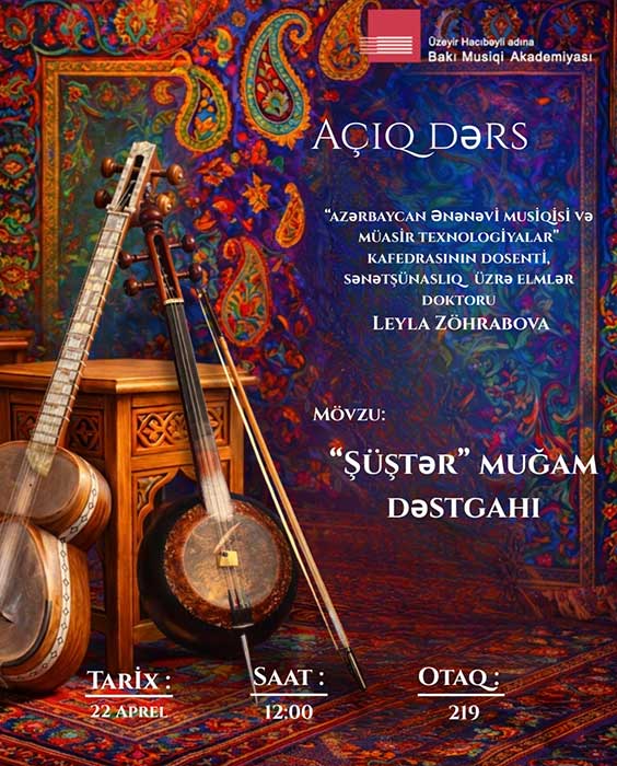 "Şüştər" muğam dəstgahı. Açıq dərs. 22 aprel 2026-cı il. Saat:12:00. Otaq 219.