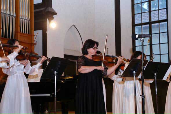 Proqramda İ.S.Baxın 2 violin üçün konsert, d moll, l hissə, G.F.Telemannın 4 violin üçün konsert, D dur, F.Şubertin “Ave Mariya”, N.Rimski-Korsakovun “Arı uçuşu”, P.İ.Çaykovskinin “Vals”, Z.Paliaşvilinin “Lekuri”, Üzeyir Məmmədovun “Xatirə”, E.Doganın “Vals”, S.Prokofyevin “Marş”, İ.Ştrausun “Anna Polka”, op.117, S.Rüstəmovun “İntizar”, Ü.Hacıbəylinin “Koroğlu” operasından ll rəqs əsərləri dinləyicilərə təqdim olundu.