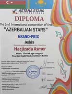 27 yanvar 2026-cı ildə Astanada keçirilən “Azerbaijan stars” ikinci beynəlxalq müsabiqədə Əməkdar artist, Üzeyir Hacıbəyli adına Bakı Musiqi Akademiyasının “İxtisas Fortepiano” kafedrasının professoru Elnarə Kəbirlinskayanın birinci kurs tələbəsi Əsmər Hacızadə Gran-pri mükafatına layiq görülmüşdür.
