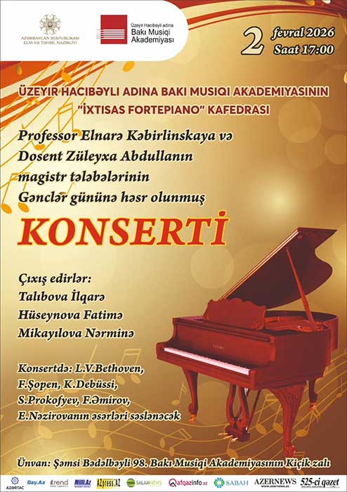 Ü.Hacıbəyli adına BMA-nın "İxtisas fortepiano" kafedrası Gənclər gününə həsr olunmuş KONSERTİ.