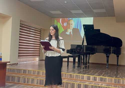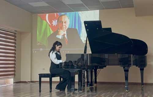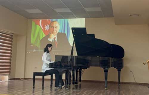 “Musiqi nəzəriyyəsi” kafedrasının dosenti, sənətşünaslıq üzrə fəlsəfə doktoru Mehparə Rzayevanın rəhbəri olduğu bu tədbirdə tələbələr ulu öndərin şərəfli ömür yolunu vərəqləyərək, "Гейдар Алиев и развитие музыкальной культуры Азербайджана", “Heydər Əliyev dövründə milli musiqi kimliyi", "Heydər Əliyev - bəstəkar yaradıcılığında", "Mədəniyyətin Dövlət siyasətinə çevrilməsi: Heydər Əliyevin incəsənət strategiyası" , “Heydər Əliyev və musiqi təhsili” adlı məruzələrlə çıxışlar etmiş və Üzeyir Hacıbəyli “Leyli və Məcnun” operasından “Şəbi hicran" xoru, Sevda Məmmədli "Laçın balladası", Niyazi "Çitra" baletindən "Adajio", Qara Qarayev "Prelüd", Vəfa Əhmədbəyova“İthaf” silsiləsindən II prelüd , Fəridə Quliyeva-"Prelüdiya" kimi musiqi nömrələrini ifa etmişlər.