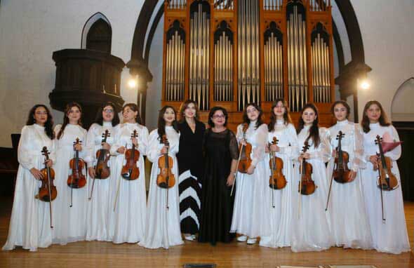 Proqramda İ.S.Baxın 2 violin üçün konsert, d moll, l hissə, G.F.Telemannın 4 violin üçün konsert, D dur, F.Şubertin “Ave Mariya”, N.Rimski-Korsakovun “Arı uçuşu”, P.İ.Çaykovskinin “Vals”, Z.Paliaşvilinin “Lekuri”, Üzeyir Məmmədovun “Xatirə”, E.Doganın “Vals”, S.Prokofyevin “Marş”, İ.Ştrausun “Anna Polka”, op.117, S.Rüstəmovun “İntizar”, Ü.Hacıbəylinin “Koroğlu” operasından ll rəqs əsərləri dinləyicilərə təqdim olundu.