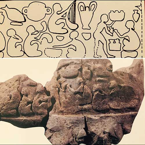 1969-cu ildə “Yuneskonun kuryeri” jurnalında çap edilən Pinhas Deluqasın və Helen Kantorun həmmüəllif olduqları məqaləsi və həmçinin “Çoğa Mış. Qazıntıların ilk beş mövsümü 1961-71” kitabını (1996, müəlliflər Pinhas Deluqas və Helen Kantor, redaktor Abbas Əlizadə) İ.Əliyeva Çoğa Mış toponiminin doğru yazılışı və xüsusən 2 şəkli haqqında məlumat vermişdir. İmina xanımın marağını cəlb edən birinci şəkildə 5 fragmentdən ibarət gildən lövhə (silindr möhür izi) əks edilmişdir. Onun üzərində gədim musiqi alətlərinin ilk təsfiri, ziyafət, və həmin ziyafətin keçirilməsində iştirak edən müğənni, ən azı 3 ifaçının, cəng (arfa növü), buynuzabənzər nəfəsli alət, zərb musiqi alətləri, və bir sıra məişət əşyaları göstərilmişdir. İkinci şəkildə isə gil topun üzərindəki möhür izlərinin sxematik təsfiri diqqəti cəlb edir. Növbəti şəkildə toplardan birinin üzərində qayıqda gələbə ilə qayıdan hökmüdar əsrlərin əhatəsində əks edilmişdir. İmina xanım tərəfindən qeyd edildi ki, bu topların, yazının əmələ gəlməsindən öncəki dövrdə satıcı və alıcı arasında ticarət zamanı istifadə edilməklə çox əhəmiyyətli rolu olmuşdur.