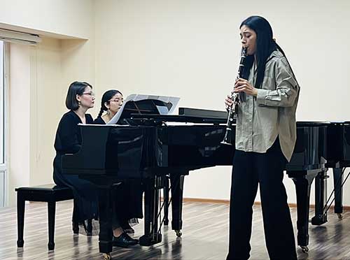 İstedadlı tələbələrin çıxış etdiyi konsert proqramına Xarici ölkə və Qazaxıstan bəstəkarlarının əsərləri, eləcə də folklor nümunələri daxil edilmişdir.