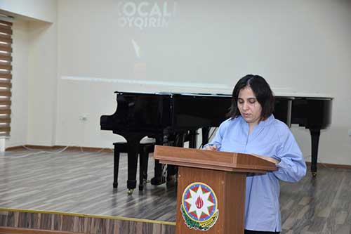 Tədbiri giriş sözü ilə elmi-tədqiqat laboratoriyasının müdiri, sənətşünaslıq üzrə fəlsəfə doktoru, dosent Nuridə İsmayılzadə açaraq Xocalı soyqırımının faciəsi haqqında ətraflı məlumat verib. Bununla yanaşı, Tələbə Elmi Cəmiyyətinin sədri, sənətşünaslıq üzrə fəlsəfə doktoru, dosent Minaxanım Babayeva da öz çıxışında Xocalı faciəsinin bəşəriyyətə qarşı törədilmiş ağır cinayətlərdən biri olduğunu, bu hadisənin tarix boyu unudulmamasının və gələcək nəsillərə çatdırılmasının vacibliyini xüsusi vurğuladı.